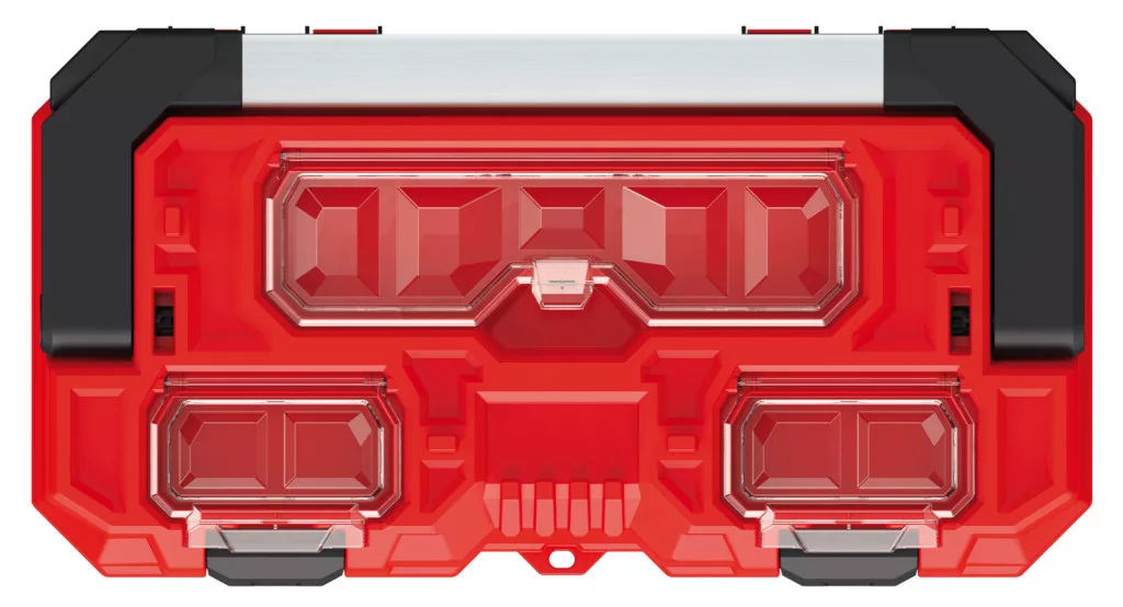 A Titan Plus 50 szerszámosláda ötvözi a robusztus kialakítást a praktikus funkcionalitással. A polikarbonát fedélbe épített három átlátszó rendszerező tökéletes rálátást biztosít az apró alkatrészekre, míg az alumínium fogantyú kényelmes szállítást tesz lehetővé.