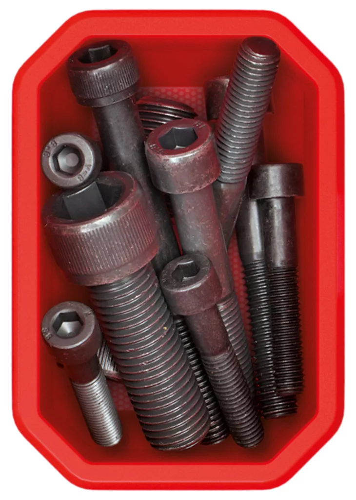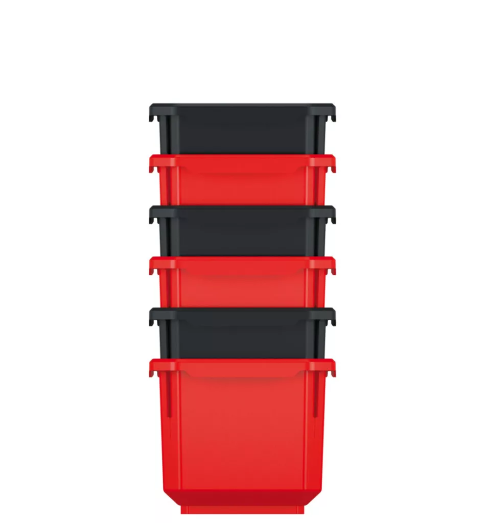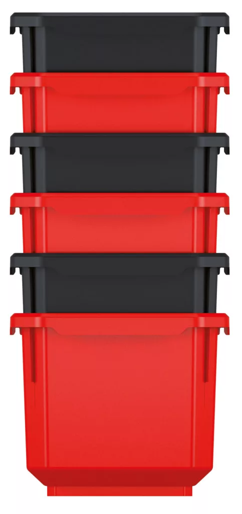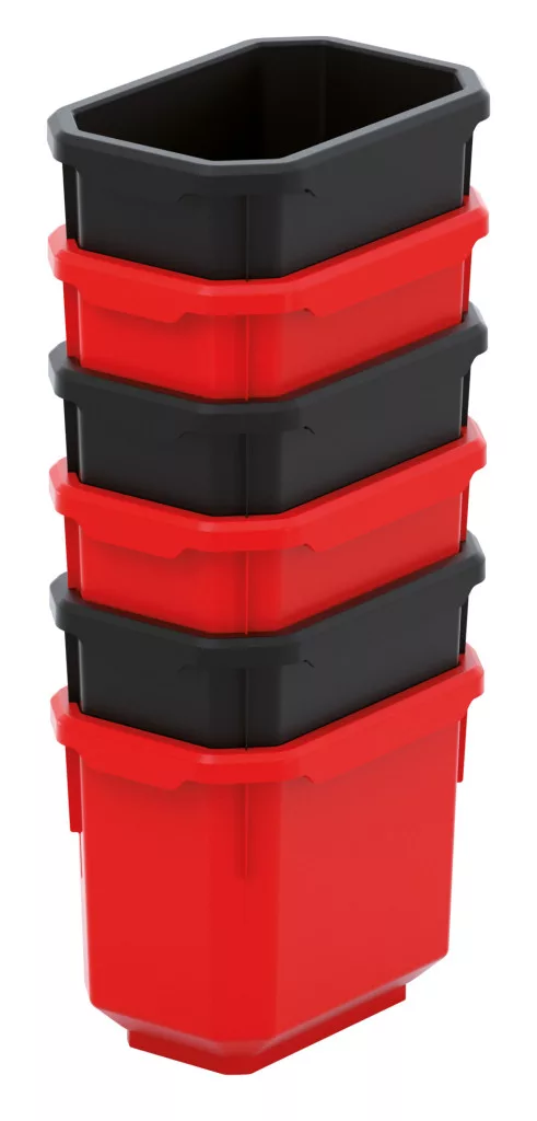 • 6 különböző méretű tároló: Optimális tárolási lehetőség különböző méretű alkatrészekhez
