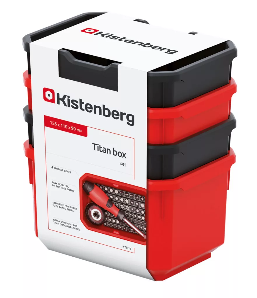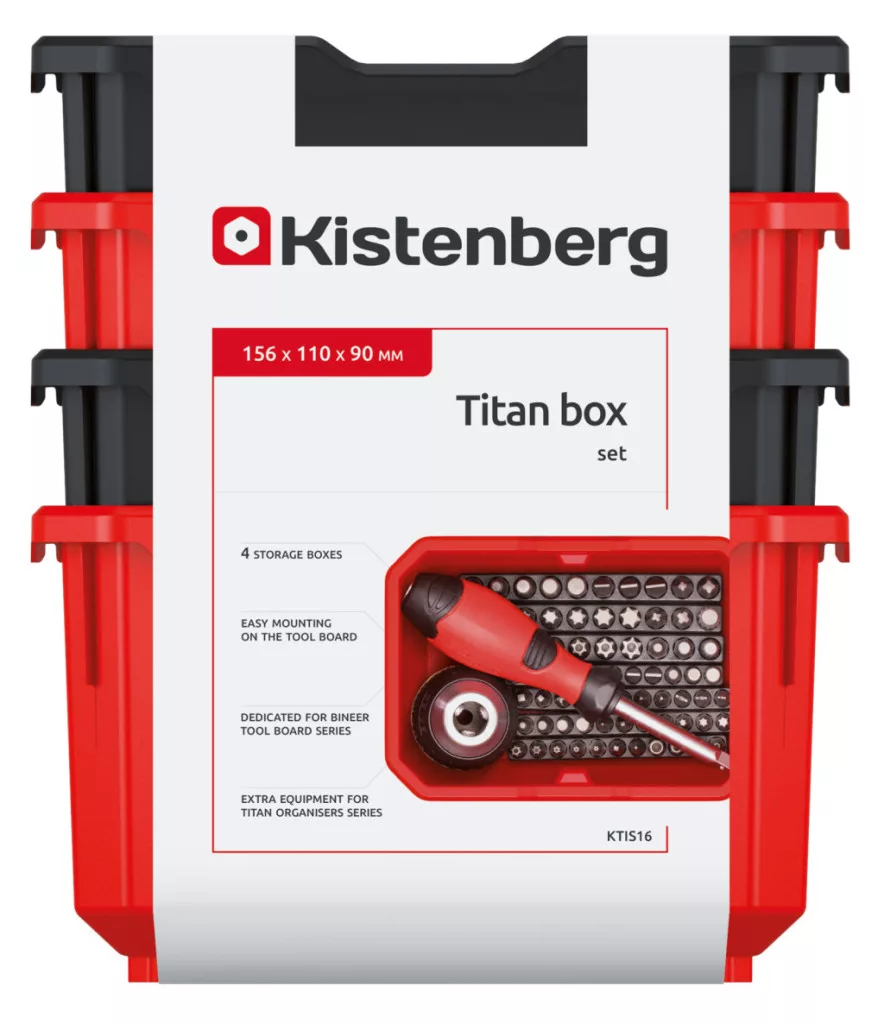 A Titan KTIS16 tárolódoboz készlet tökéletes megoldást kínál a műhelyi eszközök és alkatrészek rendszerezett tárolására. A készlet 6 strapabíró, polimer tárolódobozt tartalmaz, amelyek könnyedén rögzíthetők a Bineer Board szerszámtartó panelre.