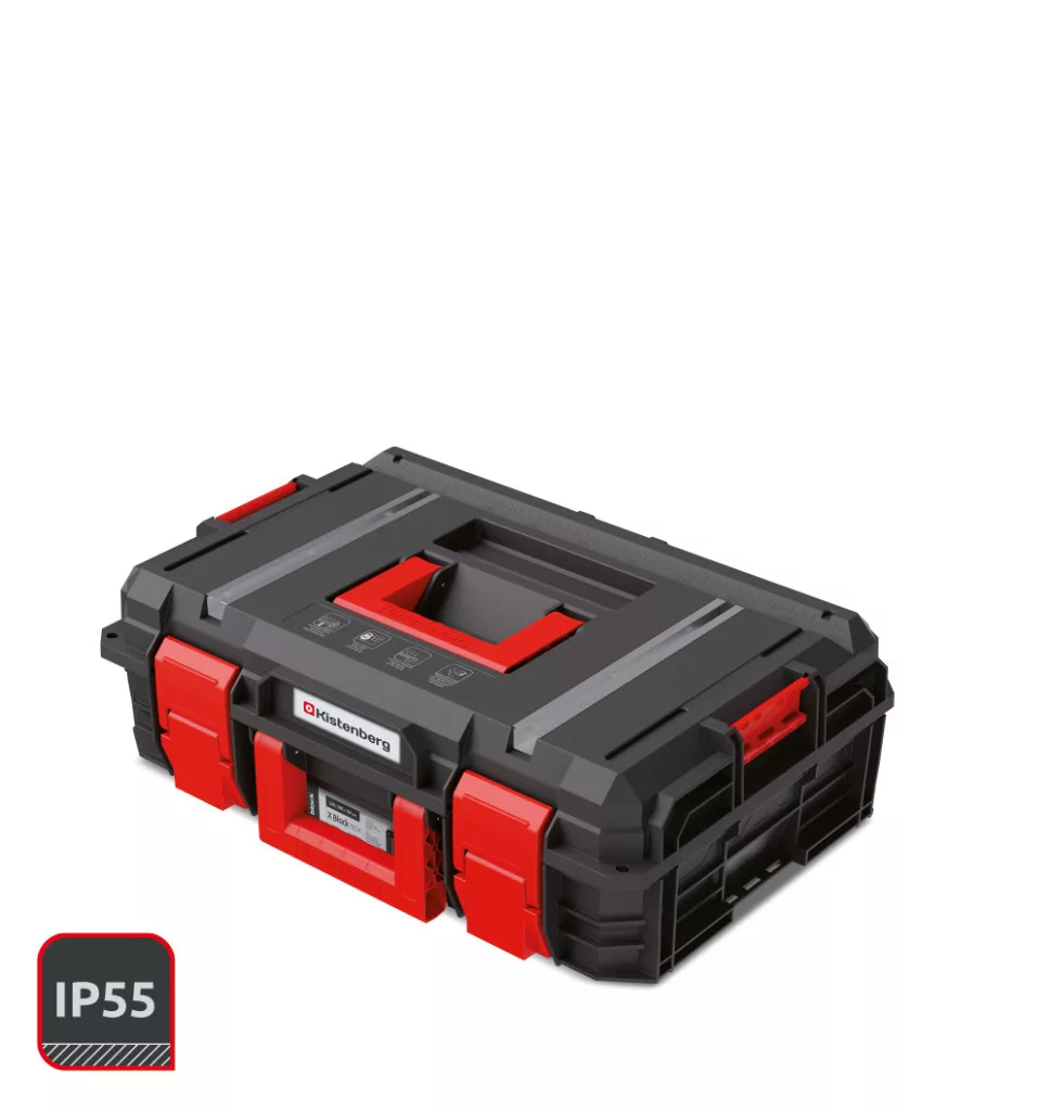 Strapabíró, moduláris szerszámkoffer beépített szervezőrendszerrel és IP55 védelemmel, amely tökéletes megoldást nyújt a professzionális szerszámok tárolására és szállítására.