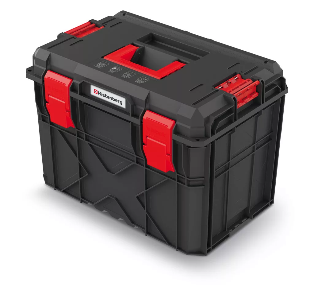 A Kistenberg X Block Pro 40 egy innovatív szerszámosláda, amely ötvözi a robusztus kialakítást a praktikus funkcionalitással. A megerősített polimer háznak és az ABS csatoknak köszönhetően maximális védelmet nyújt a szerszámoknak, miközben a beépített mérőszalag és a kivehető elválasztók segítik a hatékony munkavégzést.