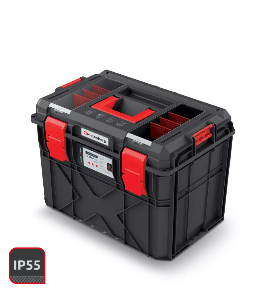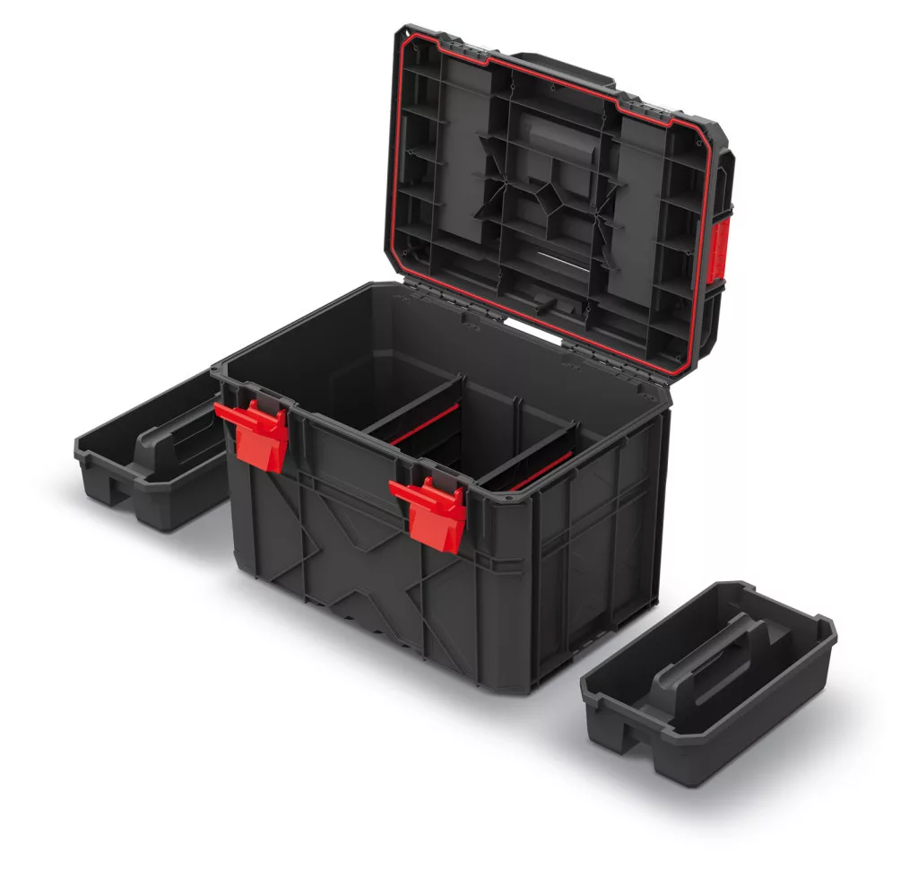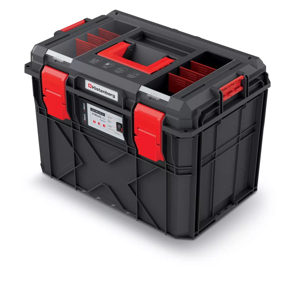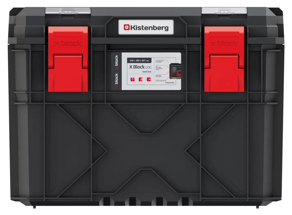 Az X Block LOG 40 egy csúcsminőségű szerszámosláda, amely ötvözi a robusztus kialakítást a praktikus funkcionalitással. A beépített mérőskála, két kivehető szervező és az IP55 védettség teszi különlegessé ezt a modellt. A megerősített polimer konstrukció és a fém zsanérok hosszú élettartamot garantálnak.