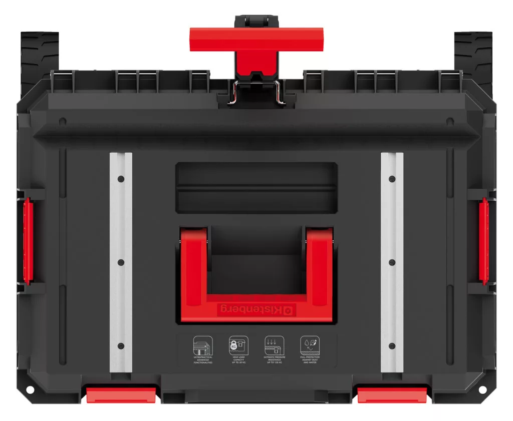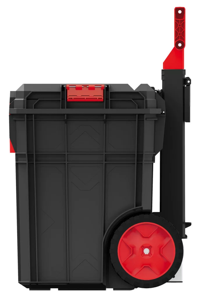 Professzionális, kerekes szerszámosláda 50 kg teherbírással, beépített munkaállvány funkcióval és IP55 védettséggel a maximális mobilitás és védelem érdekében.