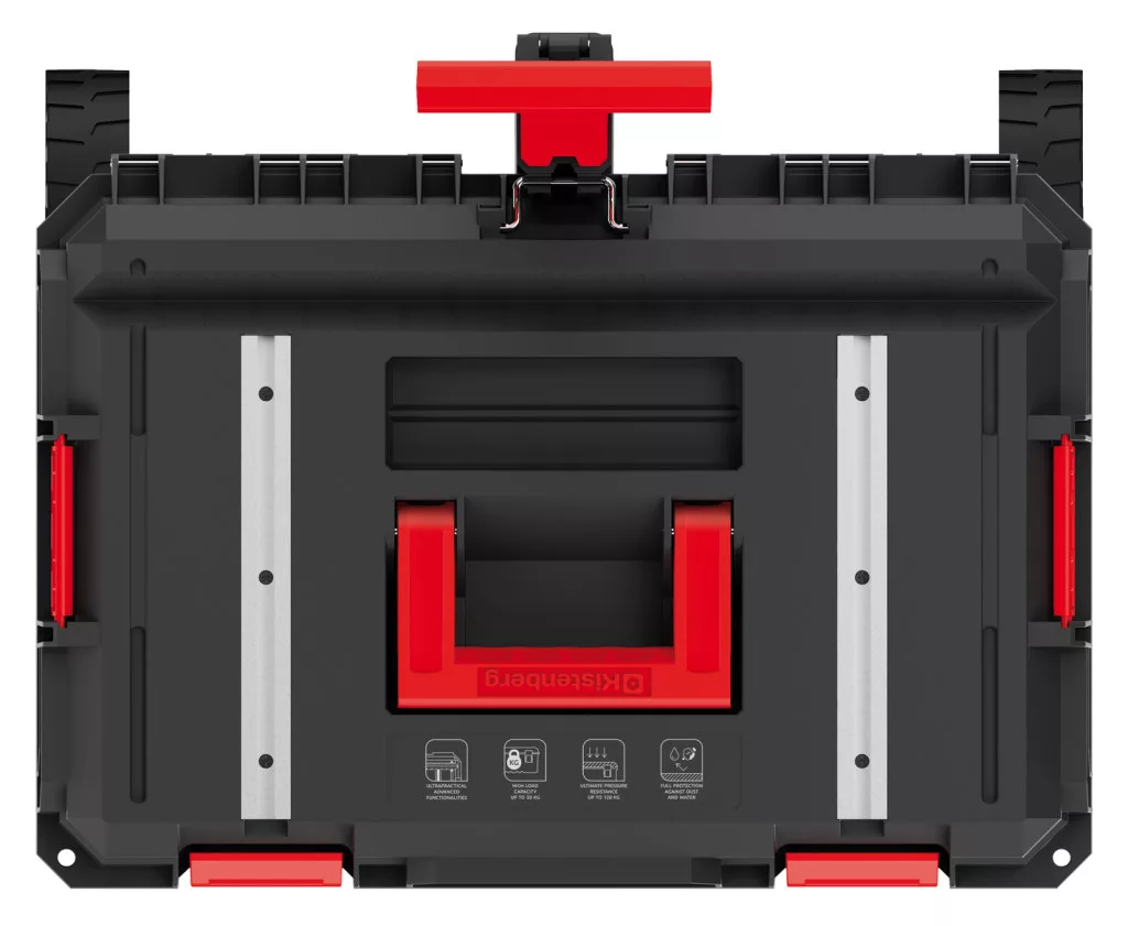 A láda tetején található alumínium sínek asztali satut rögzíthetünk, míg munkaállványként akár 120 kg terhelést is elbír. A por- és vízálló tömítés, valamint a minőségi ABS csatok hosszú élettartamot garantálnak.
