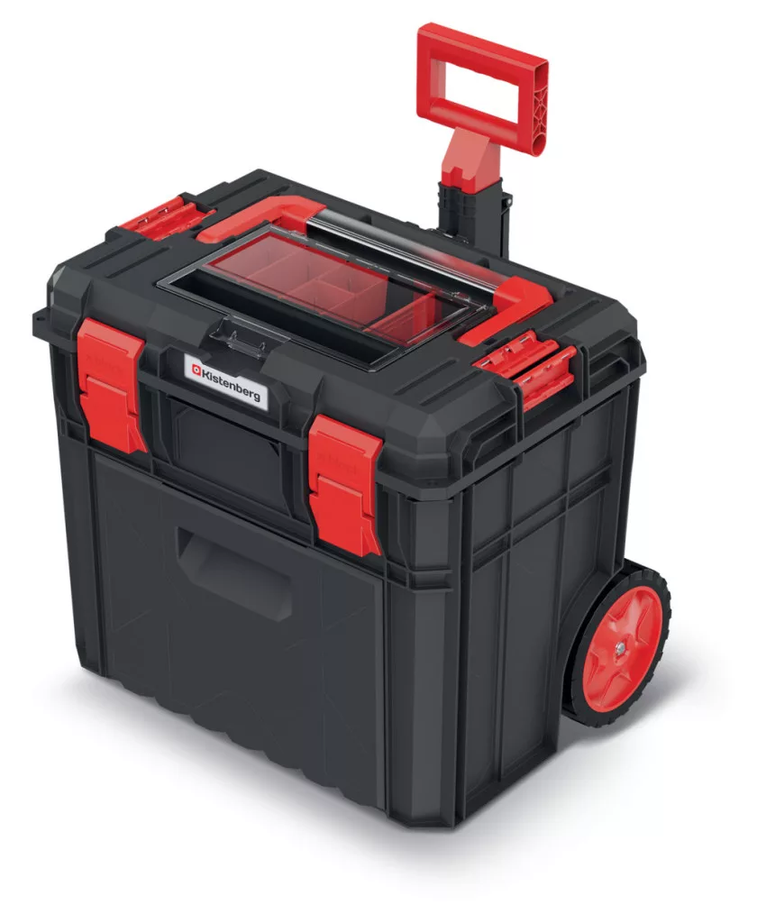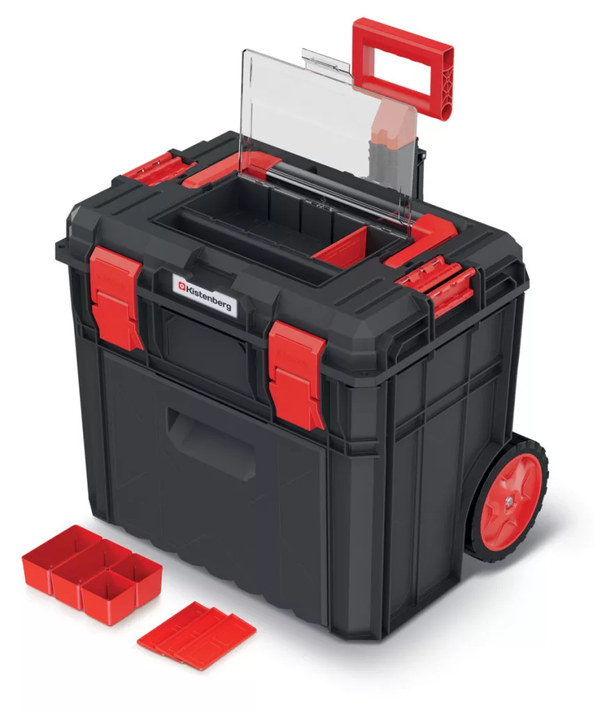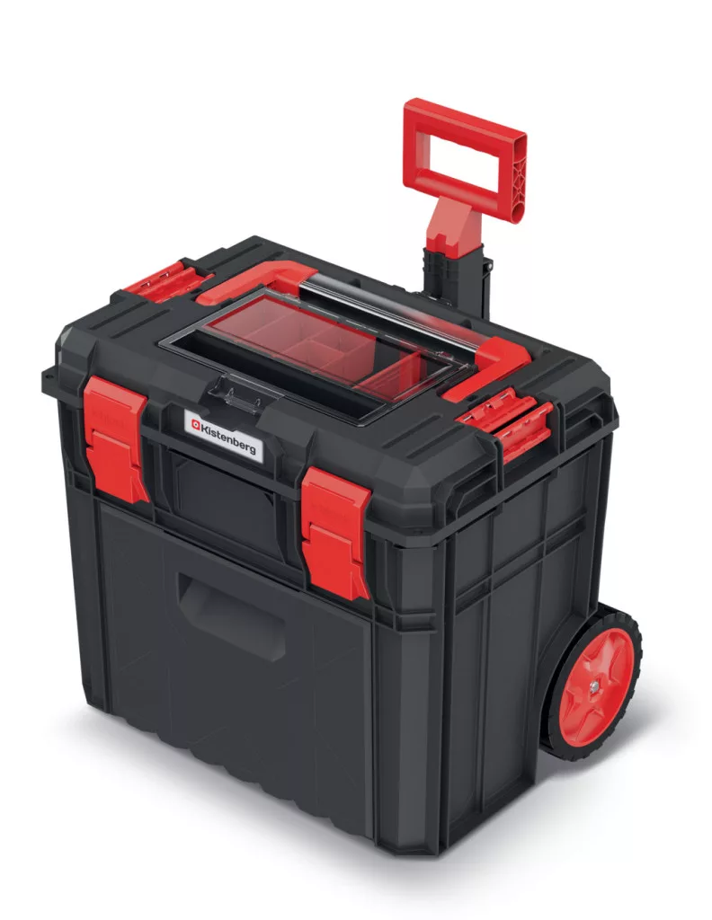 A Kistenberg X Block ALU LOG 50 egy innovatív, gurulós szerszámosláda, amely ötvözi a mobilitást és a praktikus tárolást. A megerősített polimer házban található beépített fiók, szervező rekeszek és a teleszkópos fogantyú maximális funkcionalitást biztosítanak. Az átlátszó fedélbe épített rendszerező és a kivehető elválasztók lehetővé teszik a szerszámok tökéletes rendszerezését.