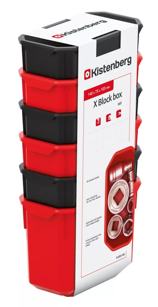 Az X Block Box műhelytároló készlet ideális megoldást kínál a műhelyben található kisebb alkatrészek, csavarok és szerszámok rendszerezett tárolására. A piros és fekete színkombinációban elérhető tárolóelemek tökéletesen illeszkednek az X Block, C Block és Bineer Board rendszerekhez.