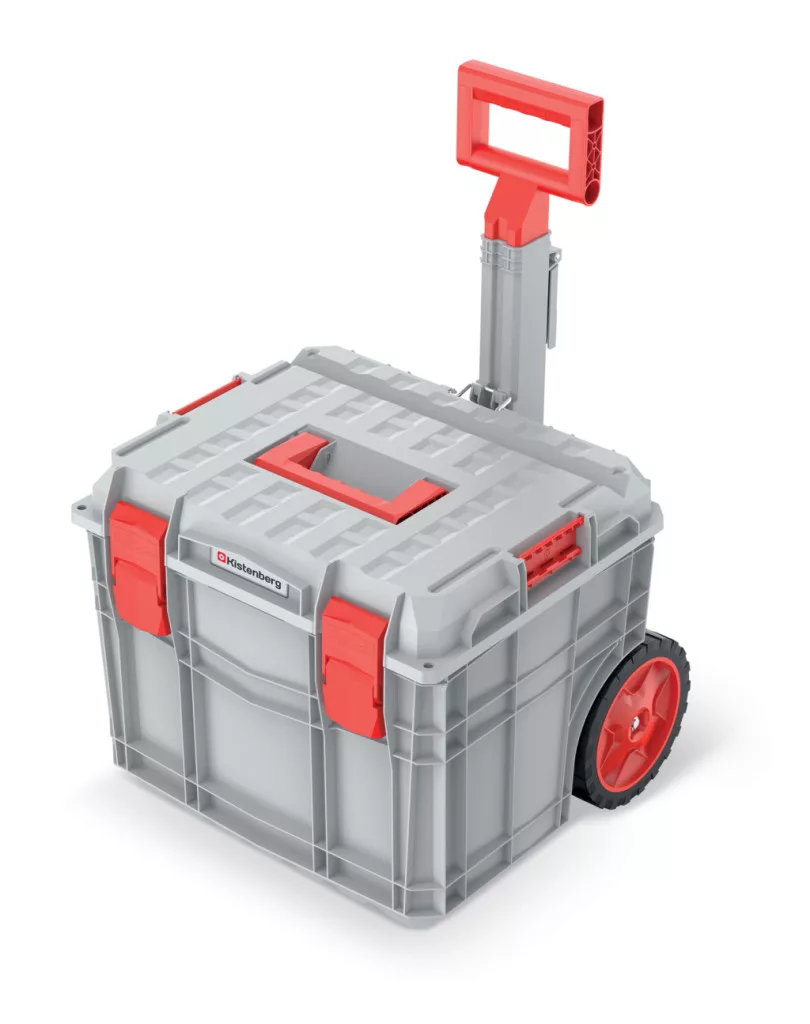 A teleszkópos fogantyú és a masszív kerekek könnyű szállíthatóságot garantálnak, míg a moduláris belső kialakítás és az állítható elválasztók lehetővé teszik a szerszámok tökéletes rendszerezését. Az IP55-ös védettség megóvja a tartalmat a portól és a nedvességtől.