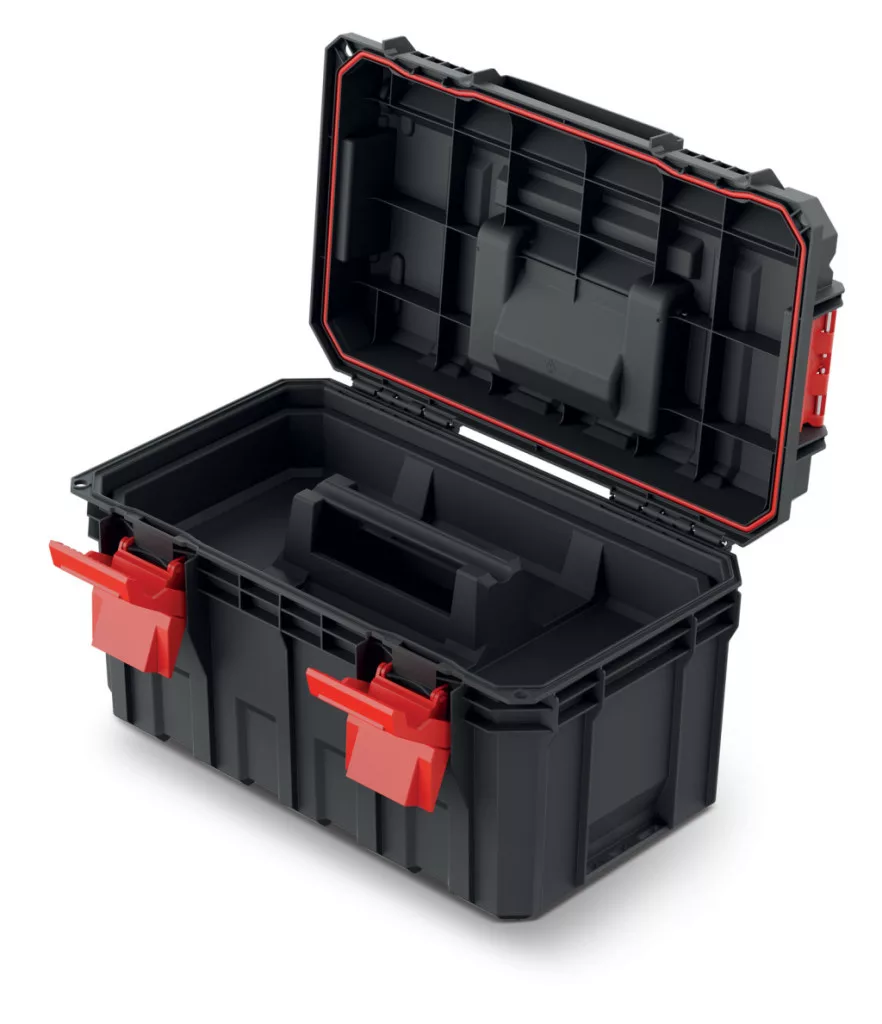 A láda teteje munkafelületként is használható, akár 100 kg terhelhetőséggel, így mobil munkaállomásként is szolgál. Az ABS csatok és fém zsanérok biztosítják a megbízható zárást, míg a kompatibilitás más S Block és X Block termékekkel rugalmas tárolási rendszer kialakítását teszi lehetővé.