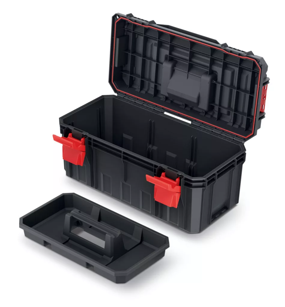 Strapabíró, IP55 védettségű professzionális szerszámosláda beépített mérőszalaggal és 100 kg teherbírású munkafelülettel.