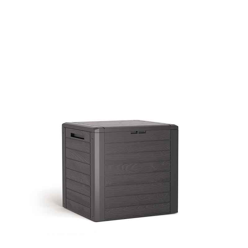 A Woodebox kerti tárolóláda egy elegáns és praktikus megoldás a kerti kellékek tárolására. Fahatású felületének és umbra színének köszönhetően harmonikusan illeszkedik bármilyen kültéri környezetbe. A szerszámok nélkül összeszerelhető konstrukció maximális kényelmet biztosít a használat során.
