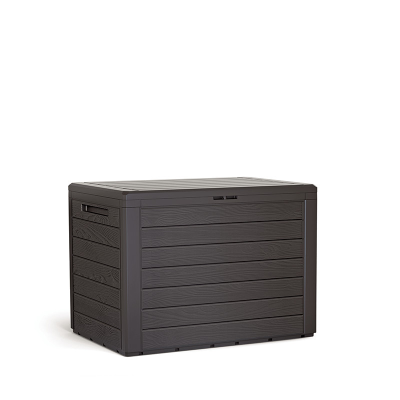 A Woodebox kerti tárolóláda egy sokoldalú tárolási megoldás, amely fahatású felületével harmonikusan illeszkedik bármilyen kültéri környezetbe. A szerszám nélkül összeszerelhető konstrukció lehetővé teszi a gyors telepítést és szükség esetén a könnyű szétszerelést.