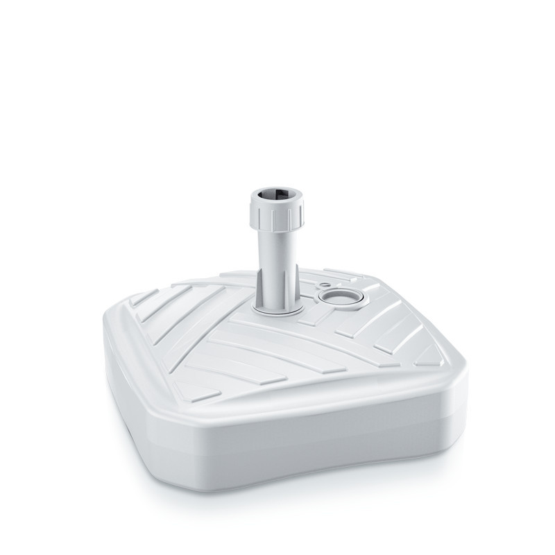A modern, letisztult dizájnnal rendelkező talp univerzális rögzítőcsappal van felszerelve, amely a legtöbb kereskedelmi forgalomban kapható napernyővel kompatibilis. A fehér szín elegáns megjelenést kölcsönöz, és harmonikusan illeszkedik bármilyen kerti környezetbe.