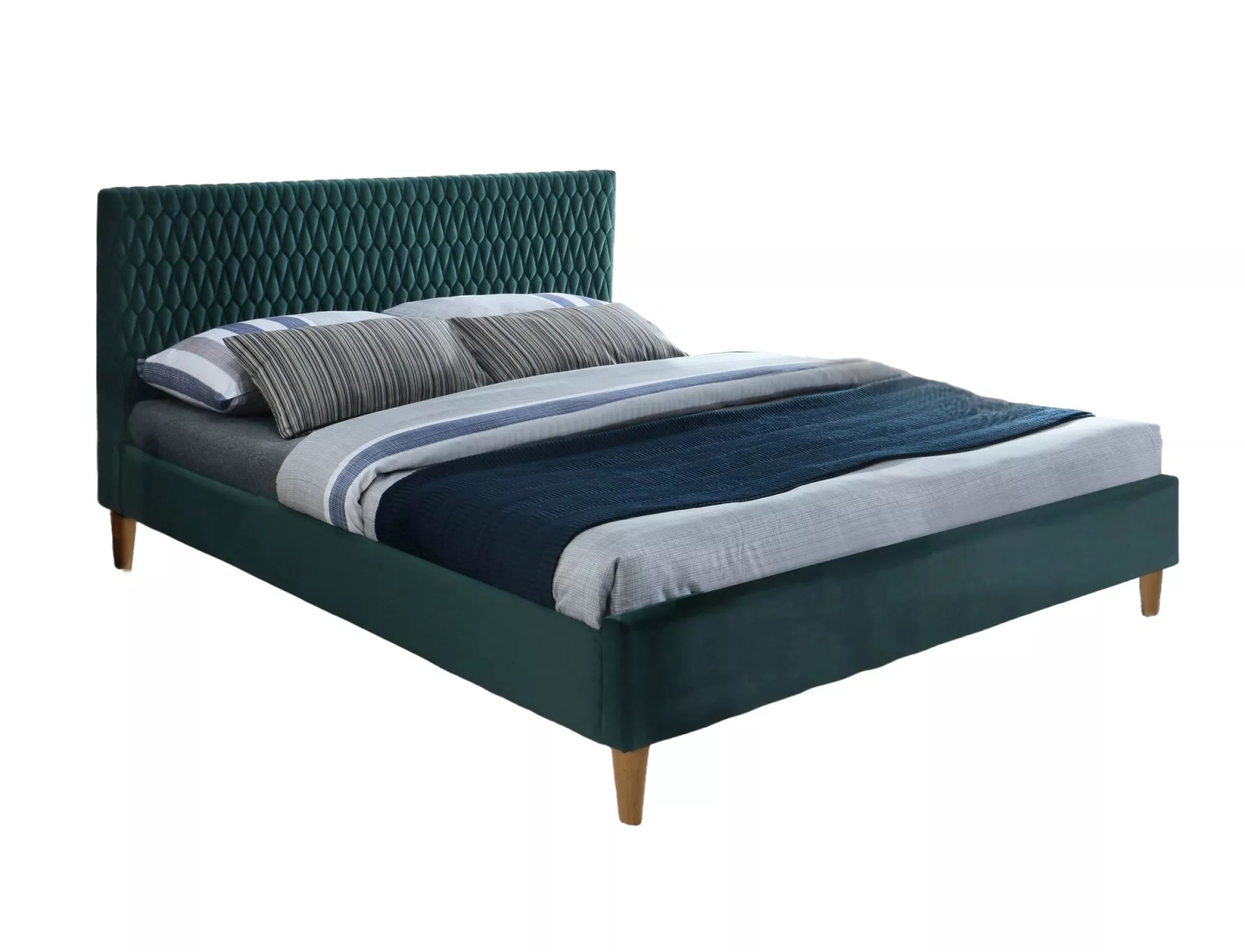 Azurro Velvet Luxus Bársony Franciaágy Zöld Steppelt Fejvéggel