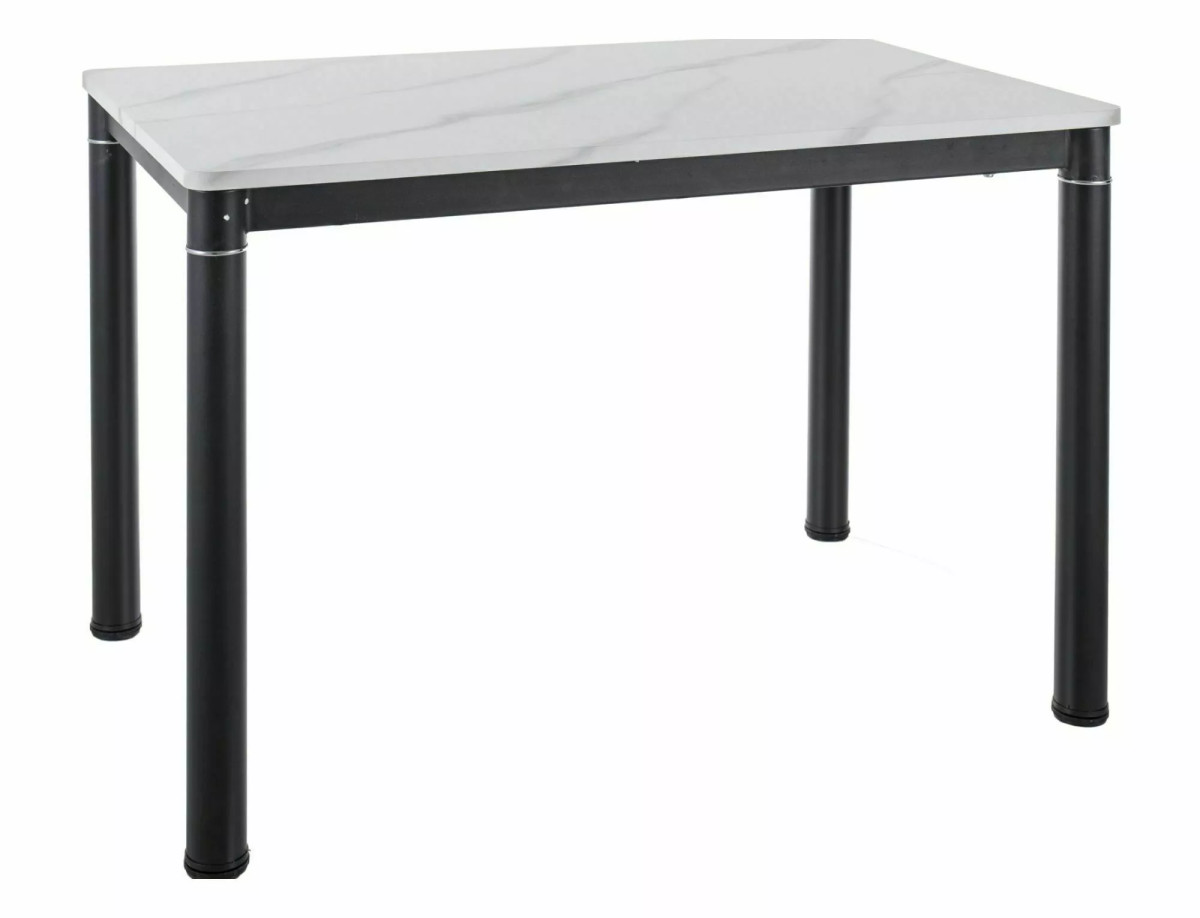 A Damar étkezőasztal tökéletes választás a modern otthonokba. A 110x70 cm-es asztallap MDF-ből készült, gyönyörű fehér márvány hatású felülettel. A matt fekete fém lábszerkezet stabil alapot biztosít és elegáns kontrasztot képez a világos asztallappal. Az asztal 75 cm magas, így kényelmes étkezést biztosít akár 6 személy részére is.