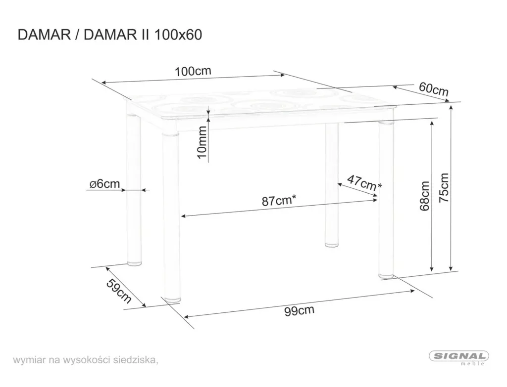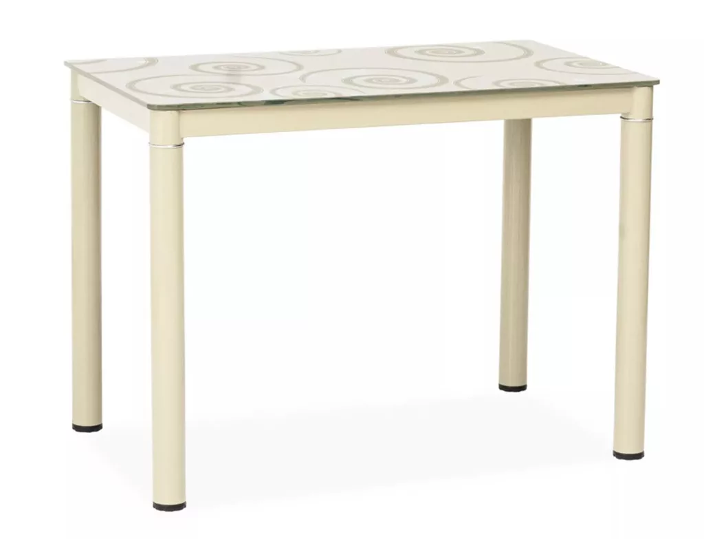 A Damar étkezőasztal tökéletes választás a modern otthonokba. Az asztal 100x60 cm-es méretével ideális 4 személy számára. A krém színű fém váz és az edzett üveg asztallap harmonikus egységet alkot. Az üveglap felületét dekoratív körminta díszíti, ami egyedi megjelenést kölcsönöz a bútornak.