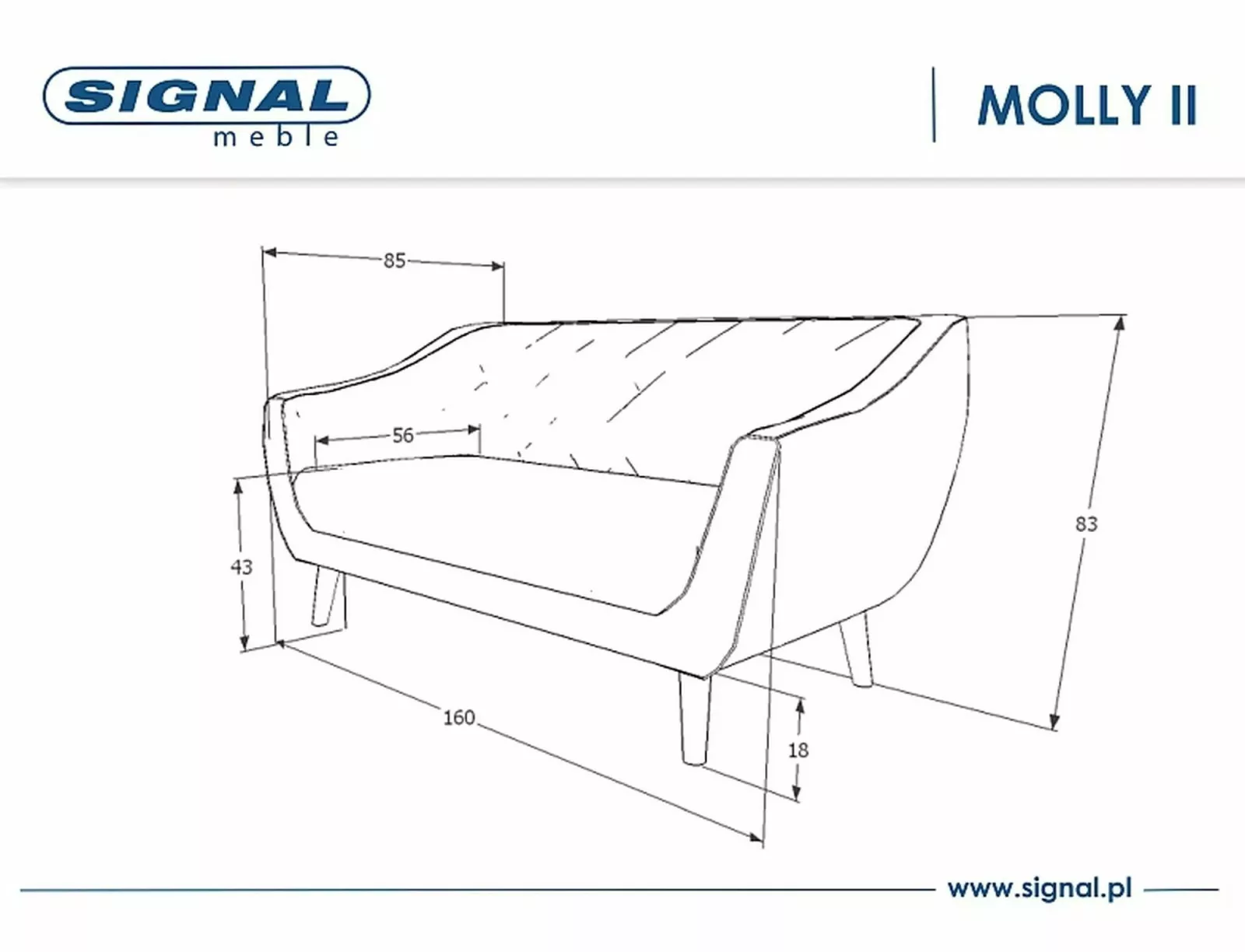 • Méret: 160 cm széles, 83 cm magas, 56 cm mély