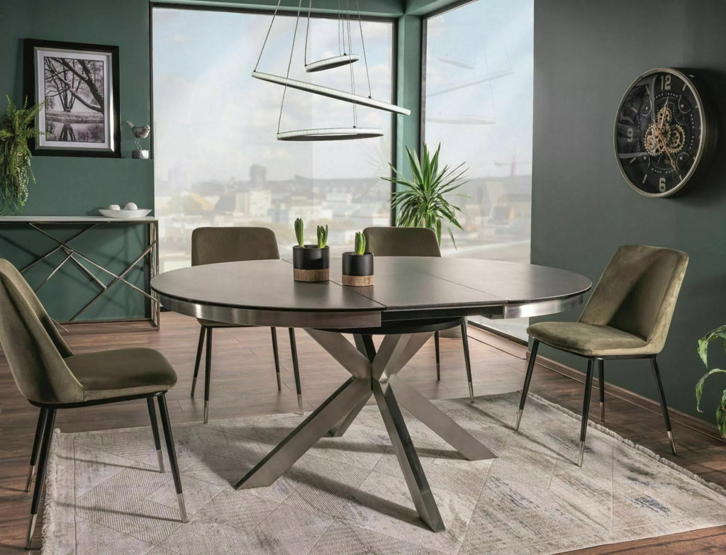 A Porto Ceramic egy lenyűgöző, kör alakú étkezőasztal, amely tökéletesen ötvözi a modern dizájnt és a funkcionalitást. Az asztal felülete edzett üvegből és spanyol kerámiából készült, amely nem csak esztétikus, de rendkívül tartós is. A szürke színű asztallap tökéletesen harmonizál a szálcsiszolt rozsdamentes acél lábszerkezettel. Az asztal átmérője 120 cm, amely kényelmesen kihúzható 160 cm-re.