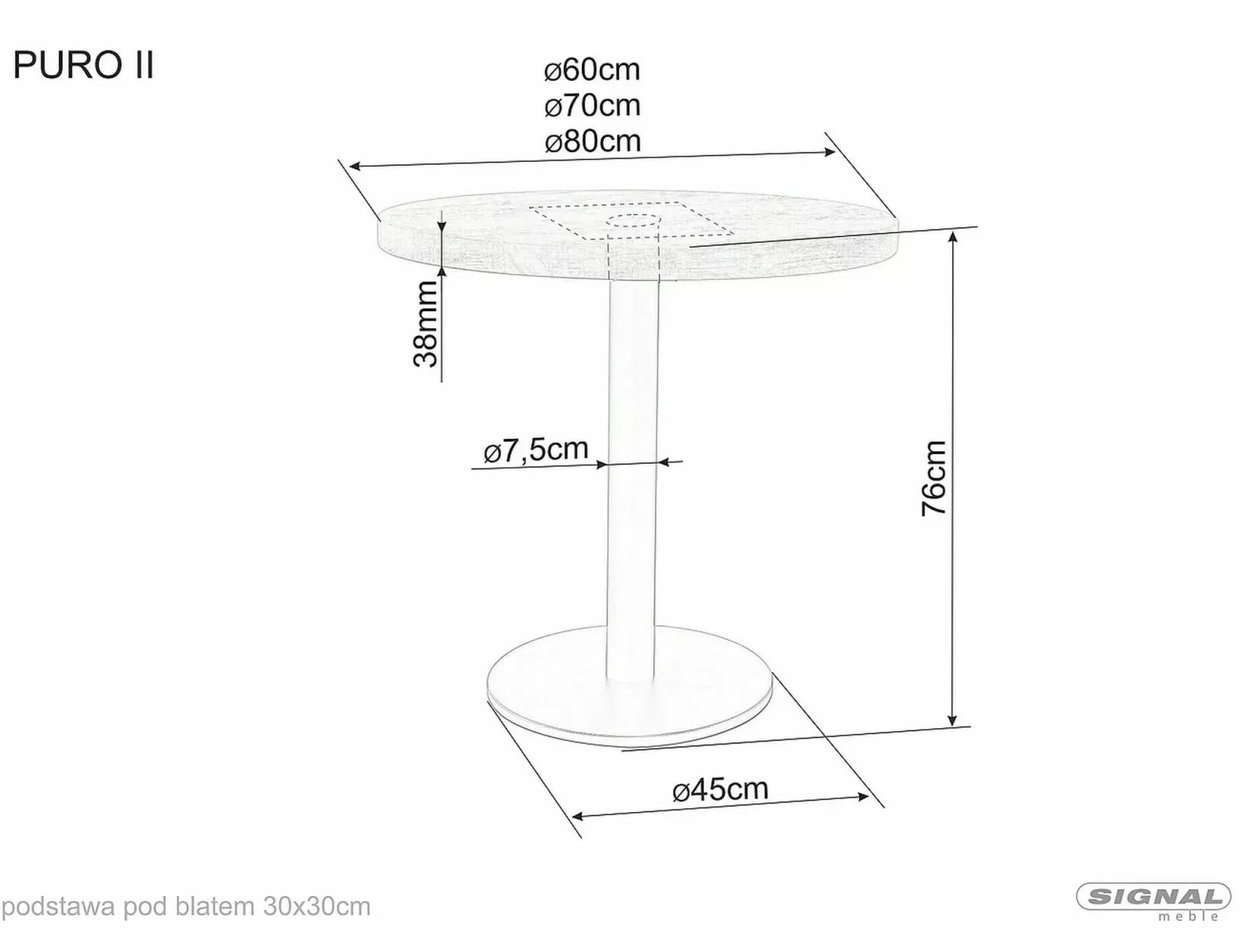 A Puro II étkezőasztal tökéletes kombinációja a természetes tölgyfa szépségének és a modern fekete fém szerkezetnek. A 80 cm átmérőjű kerek asztallap tömör tölgyfából készült, amely természetes mintázatával és meleg színével otthonos hangulatot teremt. A stabil, fekete színű fém talpazat és oszlop modern megjelenést kölcsönöz a bútornak.