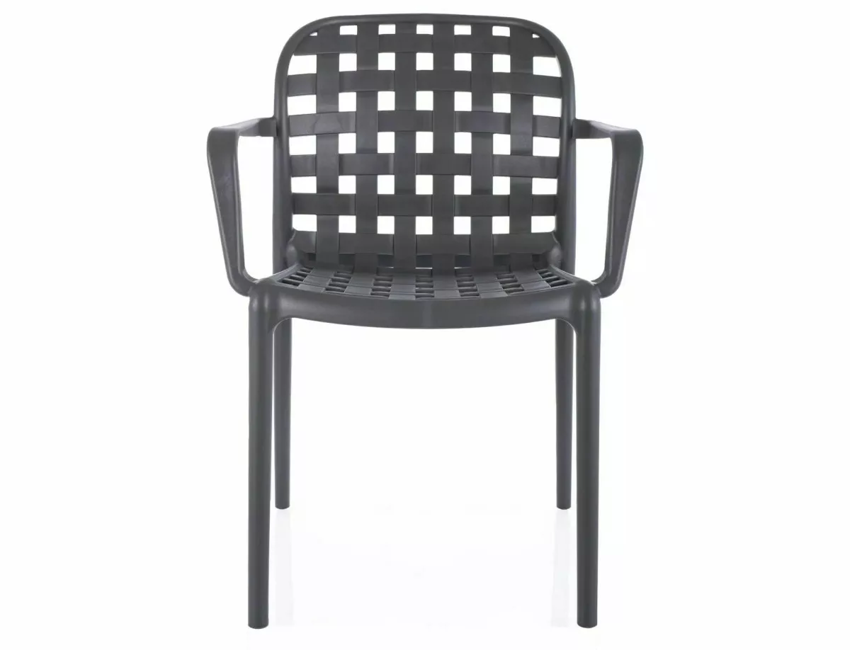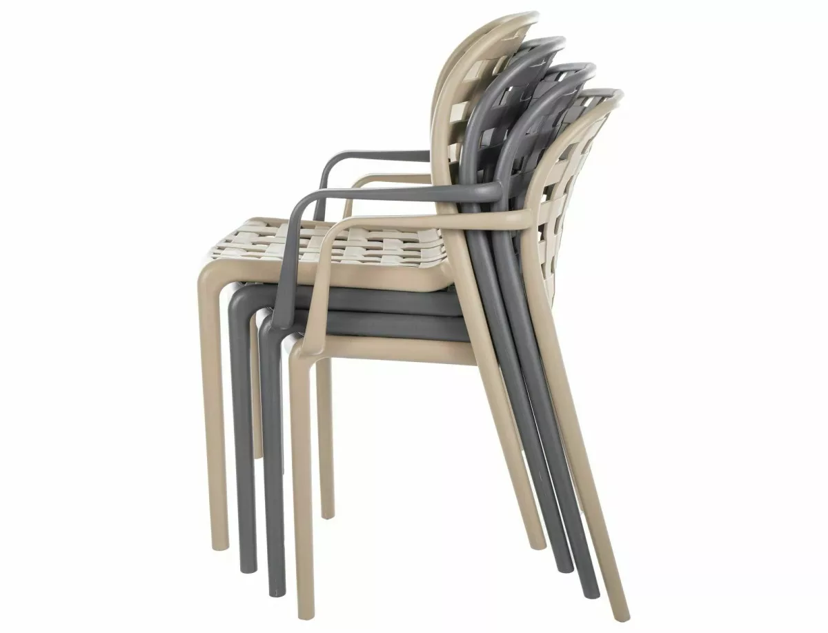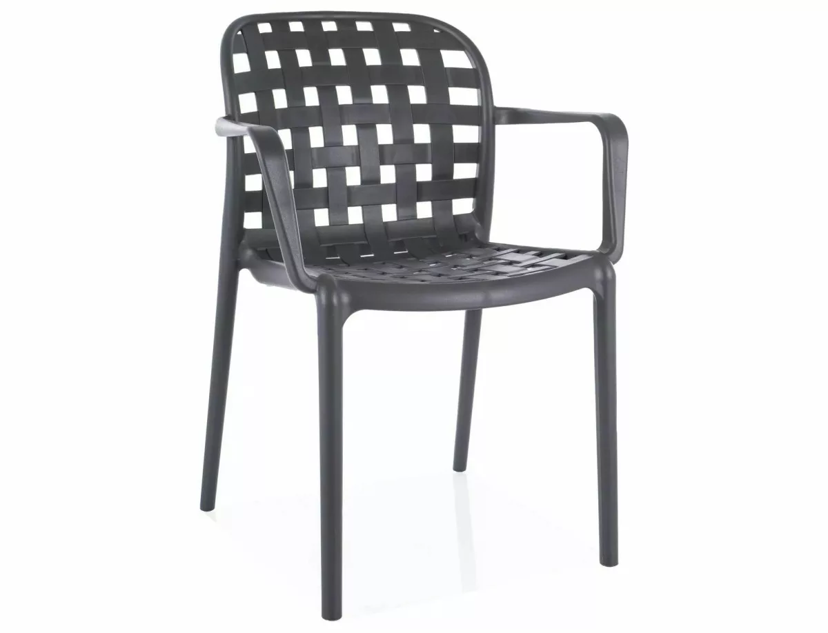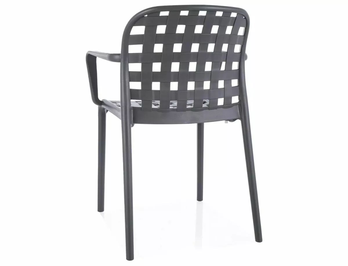 Modern, egymásba rakható szék PP műanyagból, rácsos háttámlával és karfákkal. Ideális választás éttermekbe, kávézókba és közösségi terekbe, ahol a praktikusság és a stílus egyaránt fontos.