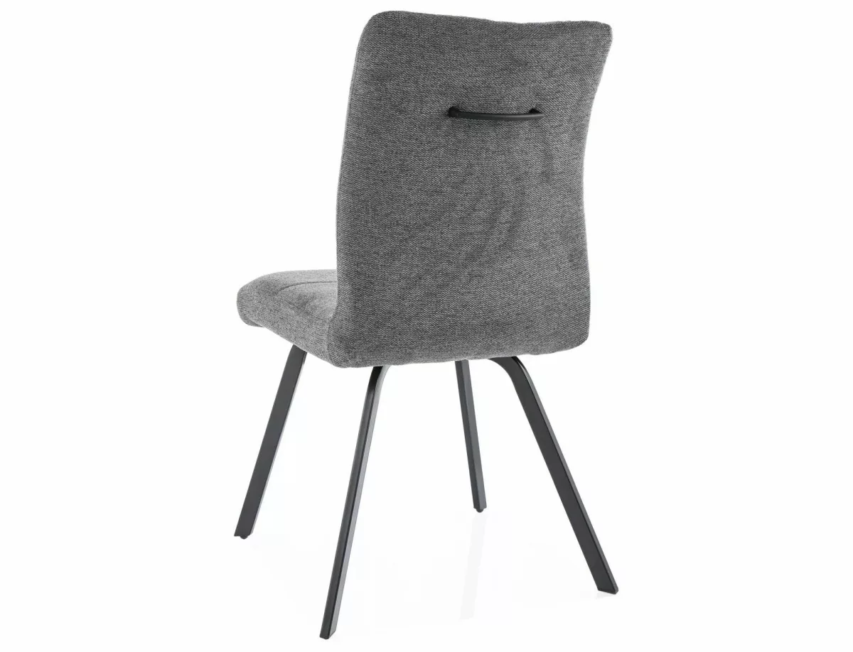 Modern és kényelmes étkezőszék Brego szövet kárpitozással és matt fekete fém vázzal. A háttámla praktikus fogantyúval rendelkezik, amely megkönnyíti a szék mozgatását.