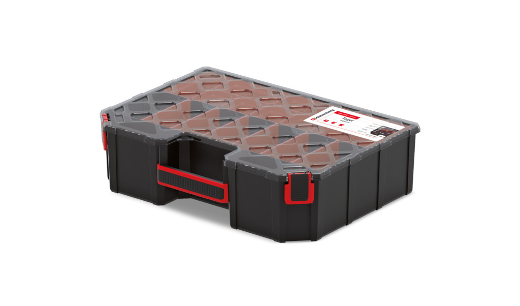 A Tager Carbo Plus 40 egy innovatív, magas falú szerszámrendező, amely tökéletes megoldást kínál a professzionális szerszámok rendszerezésére és tárolására. A megerősített polimer háznak és a strapabíró polikarbonát fedélnek köszönhetően maximális védelmet biztosít az eszközöknek.