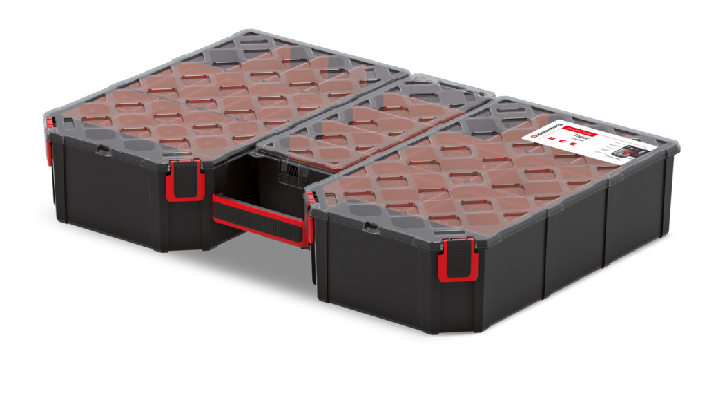A rendező 22 kivehető tárolórekesszel és 6 rugalmasan állítható válaszfallal rendelkezik, lehetővé téve a tér egyedi igények szerinti felosztását. Az ergonomikus fogantyú és a megbízható zárórendszer könnyű hordozhatóságot és biztonságos tárolást garantál.