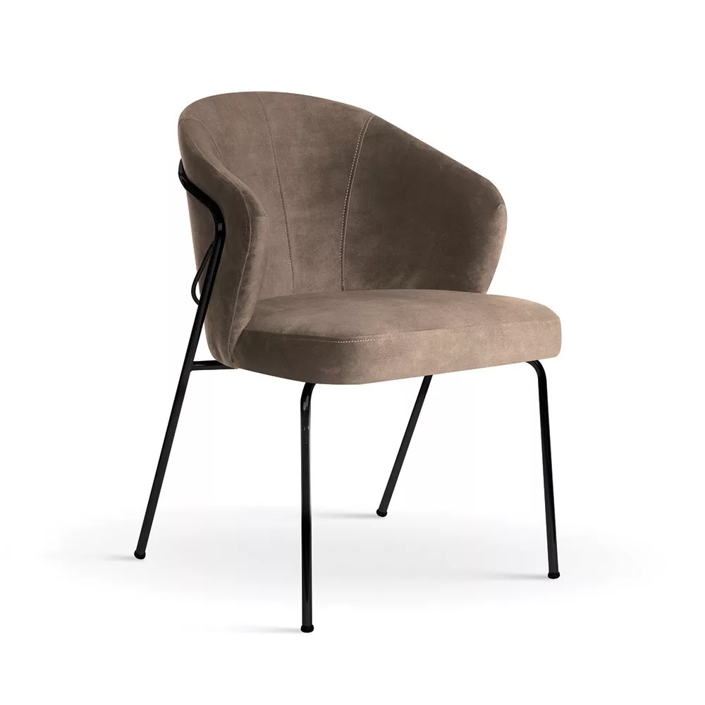 Elegáns és kényelmes Tommy kárpitozott szék puha bársony kárpitozással és stílusos arany színű fém lábakkal. Modern dizájnja és ergonomikus kialakítása tökéletes választássá teszi étkező- vagy dolgozószobába.