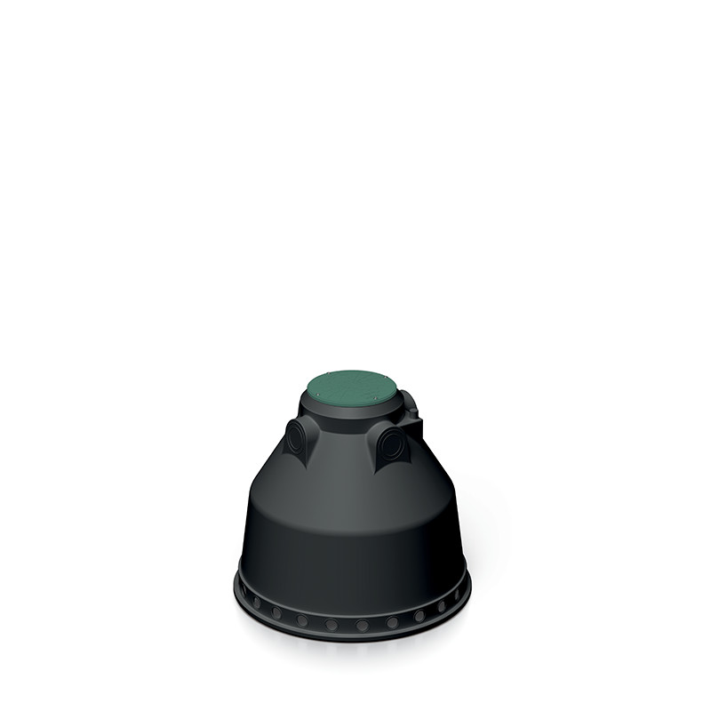 Az Unground R-Drain 500/1000 szikkasztóakna csúcsminőségű műanyagból készült, amely garantálja a maximális tartósságot és ellenállóképességet minden időjárási körülmény között. Az akna alján 24 előre jelölt furat található, amelyek lehetővé teszik a víz hatékony elszivárgását, míg a felső részen 4 csatlakozási pont biztosítja a rendszer bővíthetőségét.