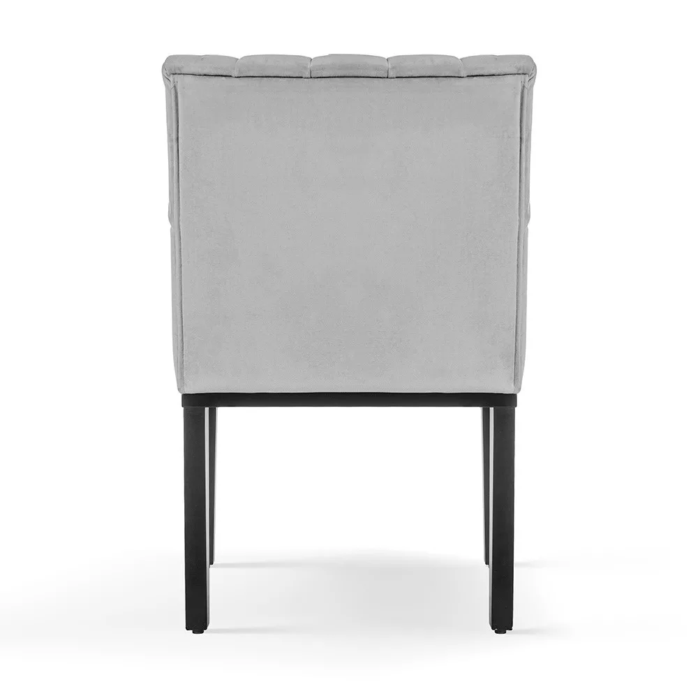 A Vancouver kárpitozott fotel a modern otthonok ideális bútordarabja. A szürke bársony kárpitozás és a wenge színű fa lábak kombinációja időtlen eleganciát sugároz. A bordázott háttámla nem csak esztétikus, de ergonomikus kialakítású is, biztosítva a megfelelő támasztást. A karfák és az ülőpárna vastag párnázása maximális kényelmet nyújt hosszabb időtöltés esetén is.