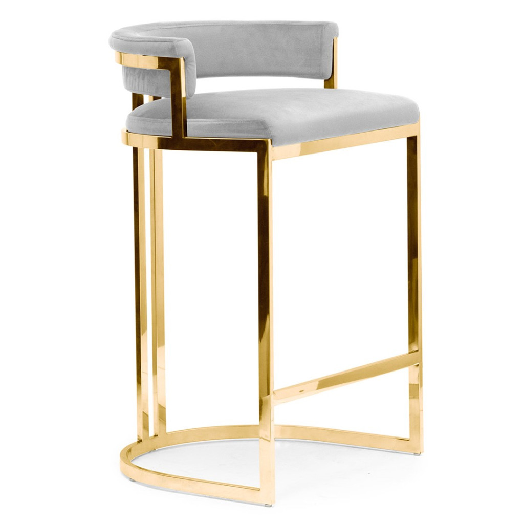 Vegas L Bárszék Kárpitozott Szürke Bársony Arany Vázzal 70cm