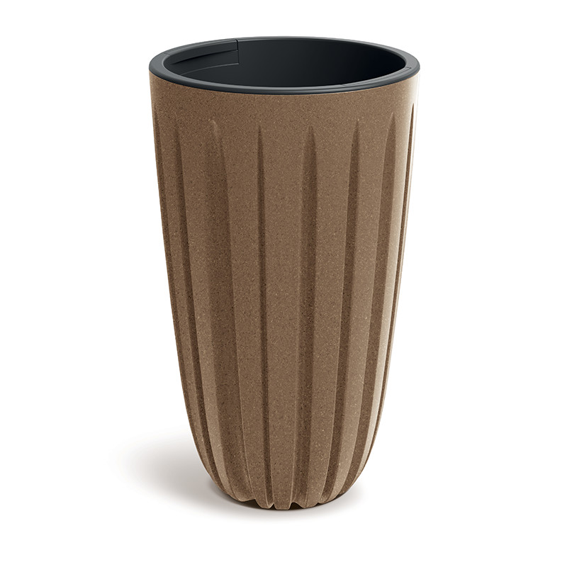 A Wario ECO Wood kaspó egy kifinomult, 50 cm magas növénytartó, amely egyedi bordázott kialakításával és natúr-eco színvilágával vonzza a tekintetet. A kúpos forma és a függőleges bordázat modern ipari megjelenést kölcsönöz, miközben tökéletesen illeszkedik mind beltéri, mind kültéri környezetbe.