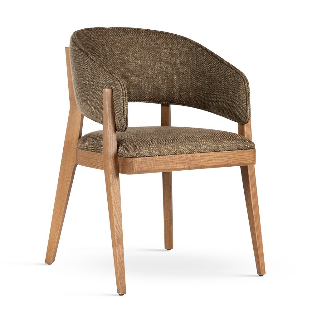 A Woody kárpitozott szék elegáns és kényelmes ülőbútor, amely ötvözi a modern dizájnt a klasszikus anyagokkal. A diófa váz és a barna kárpitozás tökéletes harmóniát alkot, miközben ergonomikus kialakítása hosszan tartó kényelmet biztosít.