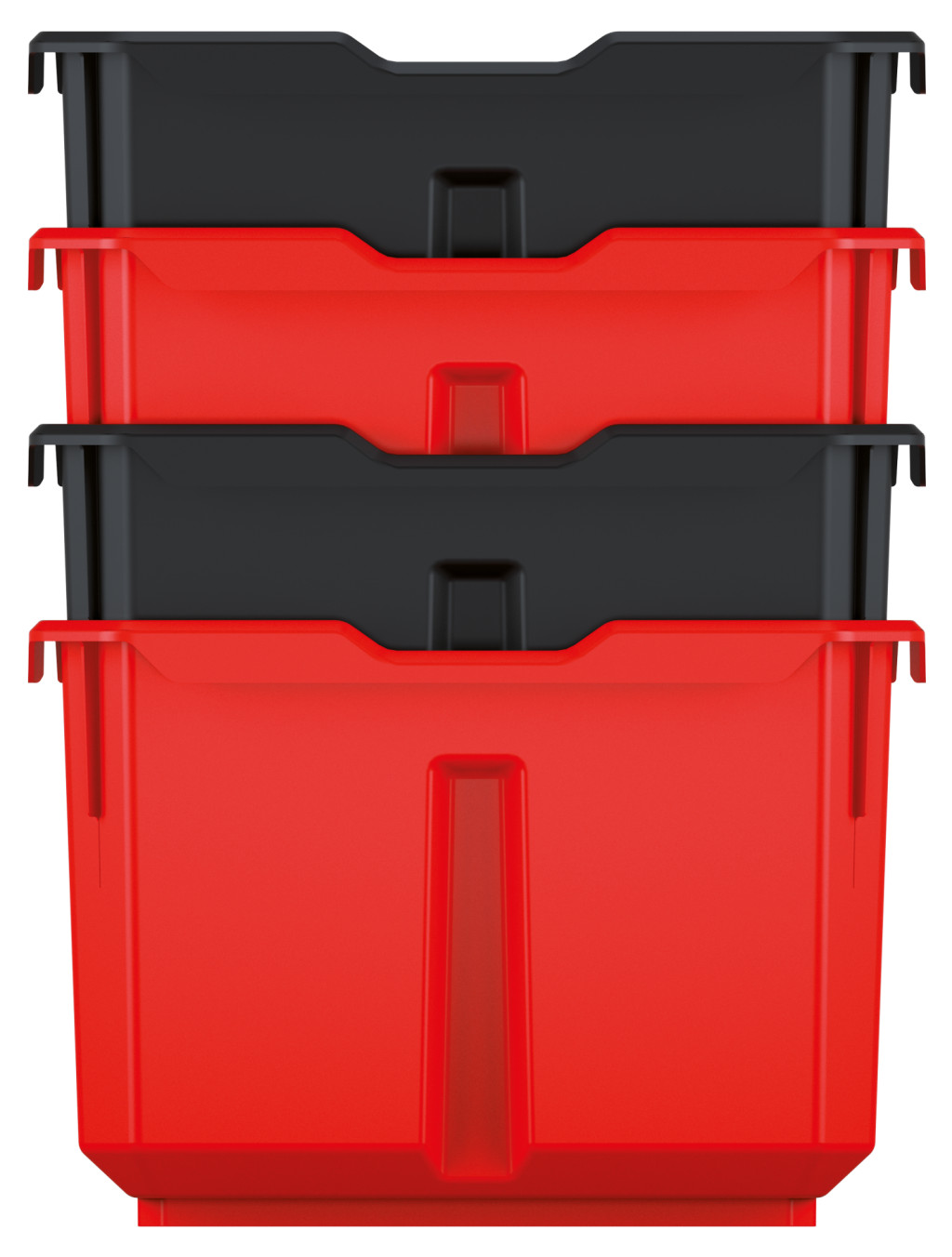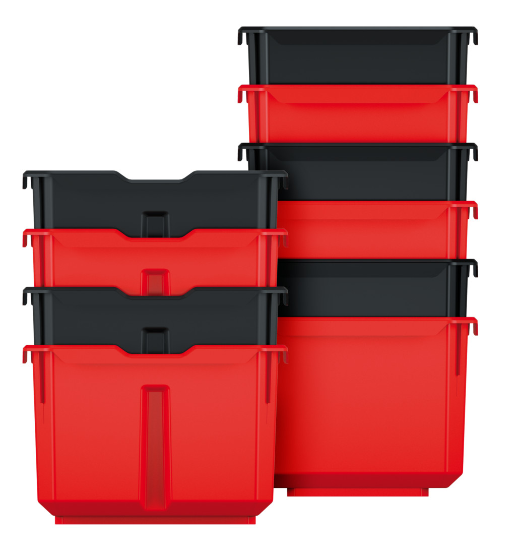 A piros és fekete színkombinációban elérhető tárolók kiválóan alkalmasak különböző méretű szerszámok, alkatrészek rendszerezett tárolására. A készlet teljes mértékben kompatibilis az X Block, C Block és egyéb rendszerelemekkel, így könnyen bővíthető.