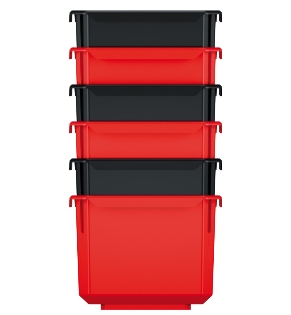 Az X Block Box műhelytároló készlet ideális megoldást kínál a műhelyben található kisebb alkatrészek, csavarok és szerszámok rendszerezett tárolására. A piros és fekete színkombinációban elérhető tárolóelemek tökéletesen illeszkednek az X Block, C Block és Bineer Board rendszerekhez.